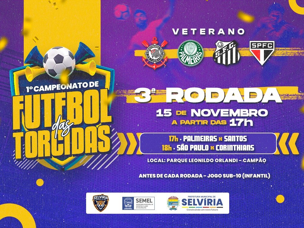 O Campeonato de Futebol de Torcidas, que acontece a partir das 17h, no Parque Municipal Leonildo Orlandi, o Campão, tem mais uma rodada neste sábado, 15 de novembro. A promoção é da Prefeitura de Selvíria, por meio da Secretaria Municipal de Esporte e Lazer.