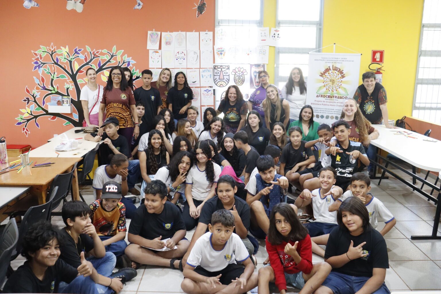 O projeto Manhã Literária – Afrocentrando realizou, na manhã desta quarta-feira, 19, mais uma ação formativa na Biblioteca Municipal Assis Chateaubriand. A atividade contou com a oficina “Confecção de Máscaras Africanas”, em alusão ao Dia da Consciência Negra, conduzida pela Cia Melissa e Paulo Teatro.