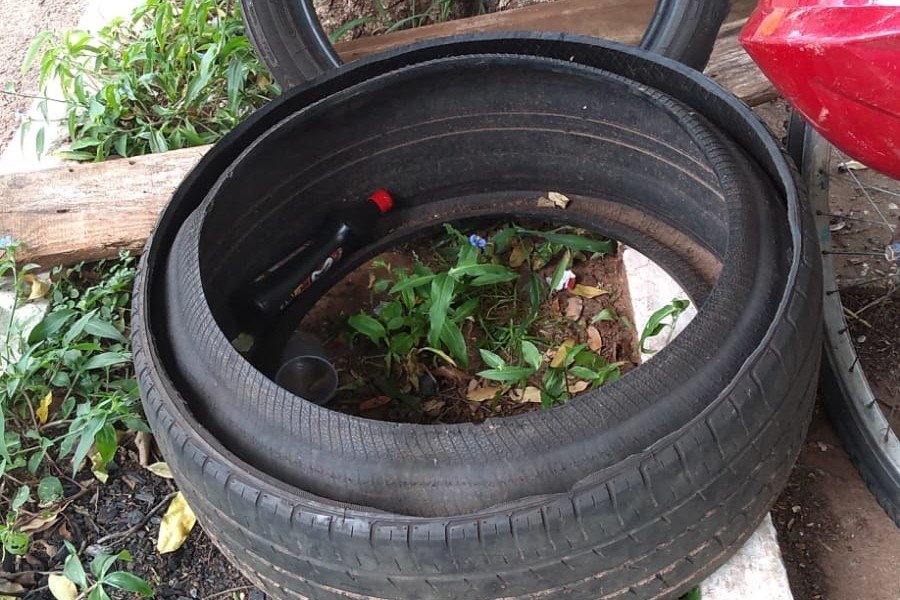A presença expressiva de pneus chamou a atenção da equipe, já que esse tipo de material acumula água facilmente e oferece condições ideais para o desenvolvimento das larvas do mosquito.